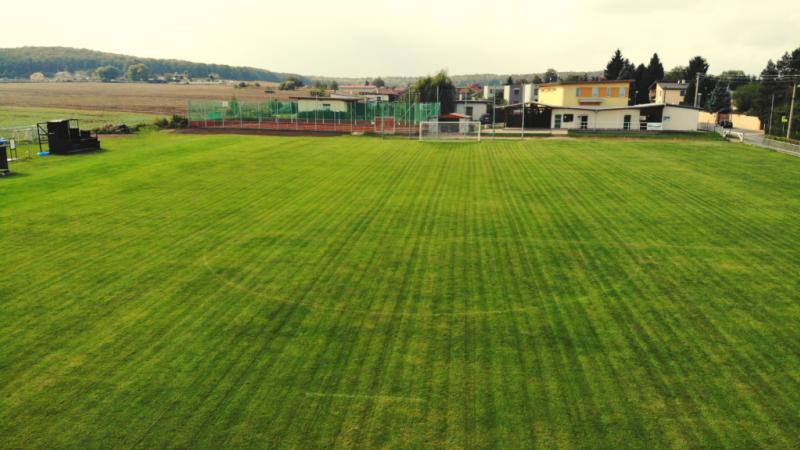 Hlavní hřiště: Travnatá plocha pro velký fotbal (přírodní tráva).